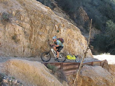 Housing construction continues, and when completed, more trails will be accessible, though some access points may change. The Conejo Open Space Conservation Agency manages Dos Vientos and many other recreational open spaces in Thousand Oaks. For more information go to www.cosf.org. Detailed trail descriptions and maps can be found at: www.venturacountytrails.org/TrailMaps/DosVientos/AreaTrails.htm CLUB SPOTLIGHT: Over the Bars Mountain Bike Club (OTB) OTB began in 1993. Regular weeknight rides are at 6:00 pm every Tuesday and Thursday all year. The weeknight rides are usually open to all levels of riders. The club also rides on most Saturdays with occasional Sunday rides as well. The weekend rides are usually for intermediate – advanced riders. Locations vary and often include rides in the Verdugo Hills, San Gabriel Mountains, Santa Monica Mountains and the Santa Susanna Mountains. OTB has several MTB trips throughout the year. Past trips have included Mammoth Lakes, Santa Cruz, Arizona, and Utah. There is also an annual road bike tour each year. These road tours have included trips through California’s National Parks, along the California Coast, Baja California, and Cuba. OTB members are also very active participants on CORBA Trail Crew trail maintenance days. For more information visit www.otbmbc.com There are many ways to enjoy a trail. Most CORBA members list mountain biking as their favorite, though many also enjoy hiking or backpacking. For a true nature experience on a mountain bike, nothing comes close to bike-packing, which combines the mountain bike’s ability to cover more distance with the solitude and adventure of an overnight backpacking trip.