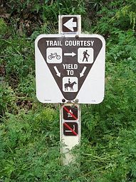 Here’s what our esteemed Jim Hasenauer has to say: “Yield means SLOWDOWN, be prepared to stop, establish communication and then pass safely. So actually, both riders yield and should be prepared to stop, and then they work out the pass. It’s similar to cars merging on the freeway. The oncoming car has to find the safe space to move into, but a car already on the freeway is likely to move over and make room. There’s no set rule who must yield uphill or downhill, but it’s been generally accepted that the rider moving downhill yields, because it’s easier for them to get started again. No one should assume that another is going to stop, dismount, et cetera. It’s all about the communication.” Bottom line: When in doubt, yield the right-of-way.