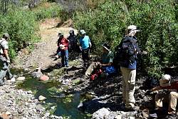 Saturday, CORBA volunteers and few others install drains and repair ruts on the Wood Canyon Vista Trail, a segment of the backbone trail. Hiking to the work area.