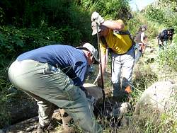 Saturday, CORBA volunteers and few others install drains and repair ruts on the Wood Canyon Vista Trail, a segment of the backbone trail.