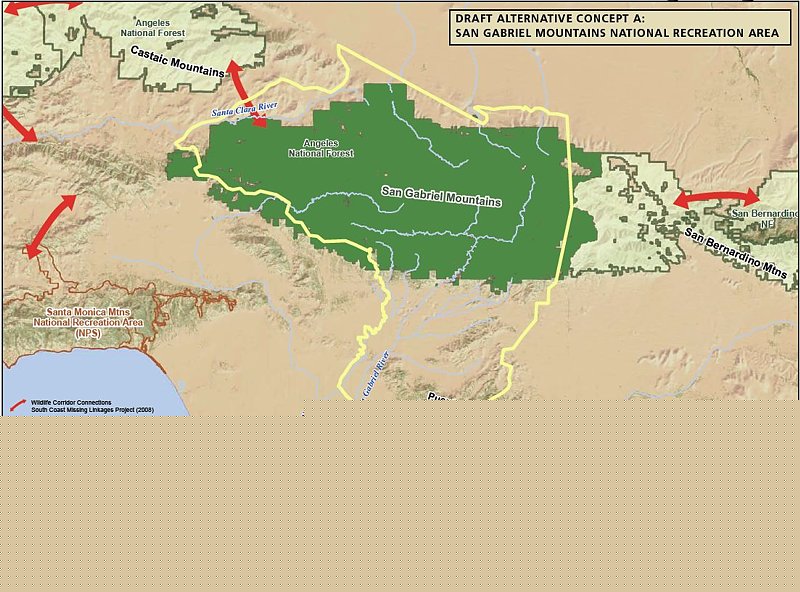 Alternative C would have the NPS taking a leadership role and overseeing a partnership between the FS and the many local land managers. The area would include only the San Gabriel watershed and river corridor. This would exclude most of the current southern Angeles National forest.