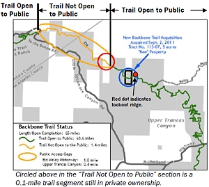 Some of the land crossed by Etz Meloy Mtwy at the west end is still in private hands. The NPS is actively trying to acquire this propery or make some other arrangements with the landowners to allow public access. Until that happens, the west end of Etz Meloy has been and continutes to be closed to public access (see map above). The NPS asks that members of the public stay off of this section to help engender the